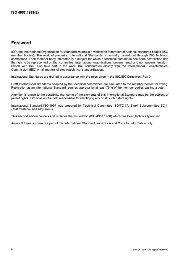 International Standard ISO 4957 was prepared by Technical Committee ISO/TC 17, Steel, Subcommittee SC 4,