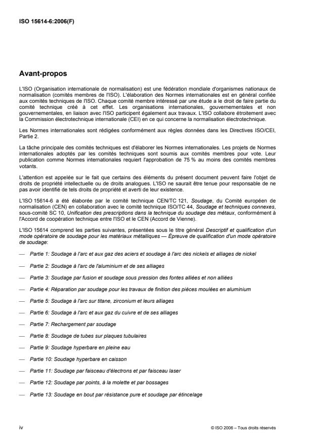 ISO 15614-6:2006 specifies how a preliminary welding procedure specification is qualified by welding procedure tests. It applies to the arc and gas welding of copper and copper alloys in all product forms.
