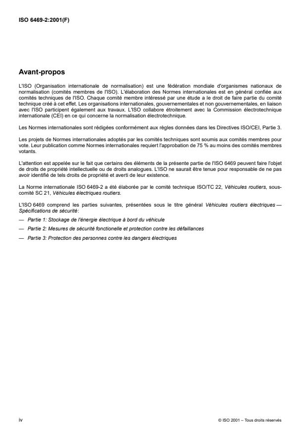 ISO 6469 consists of the following parts, under the general title Electric road vehicles — Safety specifications: