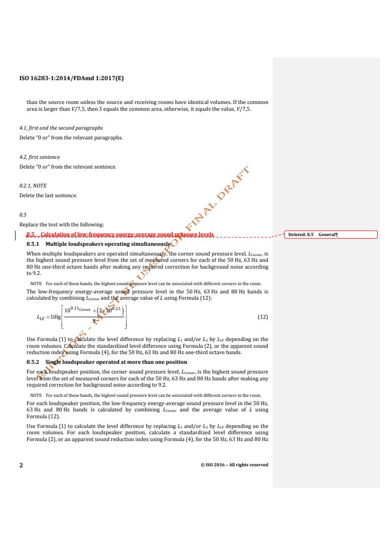 8.5 Calculation of low-frequency energy-average sound pressure levels Deleted: 8.5 General¶