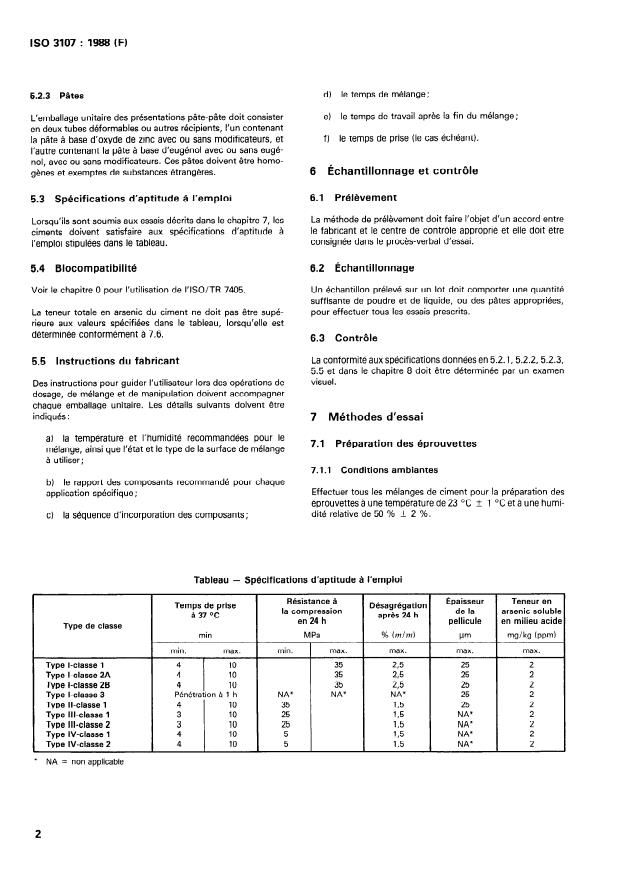 ISO 3107:1988 - Ciments dentaires a base d'oxyde de zinc-eugénol et ciments dentaires a base d'oxyde de zinc sans eugénol
