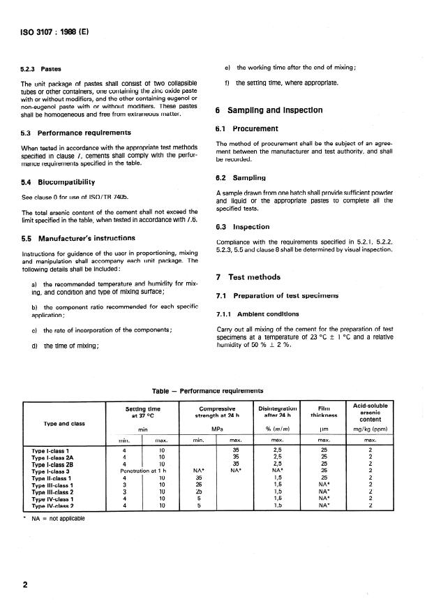 ISO 3107:1988 - Dental zinc oxide/eugenol cements and zinc oxide non-eugenol cements