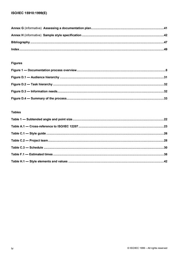 ISO/IEC 15910:1999 is a standard published by the International Organization for Standardization (ISO). Its full title is "Information technology — Software user documentation process". This standard covers: Information technology — Software user documentation process
