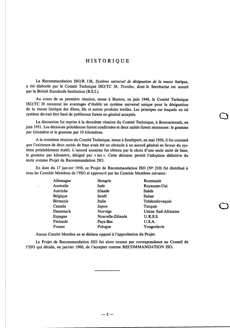 La Recommandation ISO/R 138, Système universel de dt.vignation de la masse lintique,