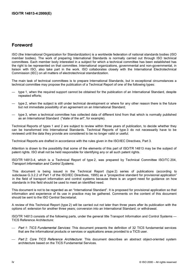 ISO/TR 14813-4:2000 is classified under the following ICS (International Classification for Standards) categories: 03.220.01 - Transport in general; 35.240.60 - IT applications in transport. The ICS classification helps identify the subject area and facilitates finding related standards.