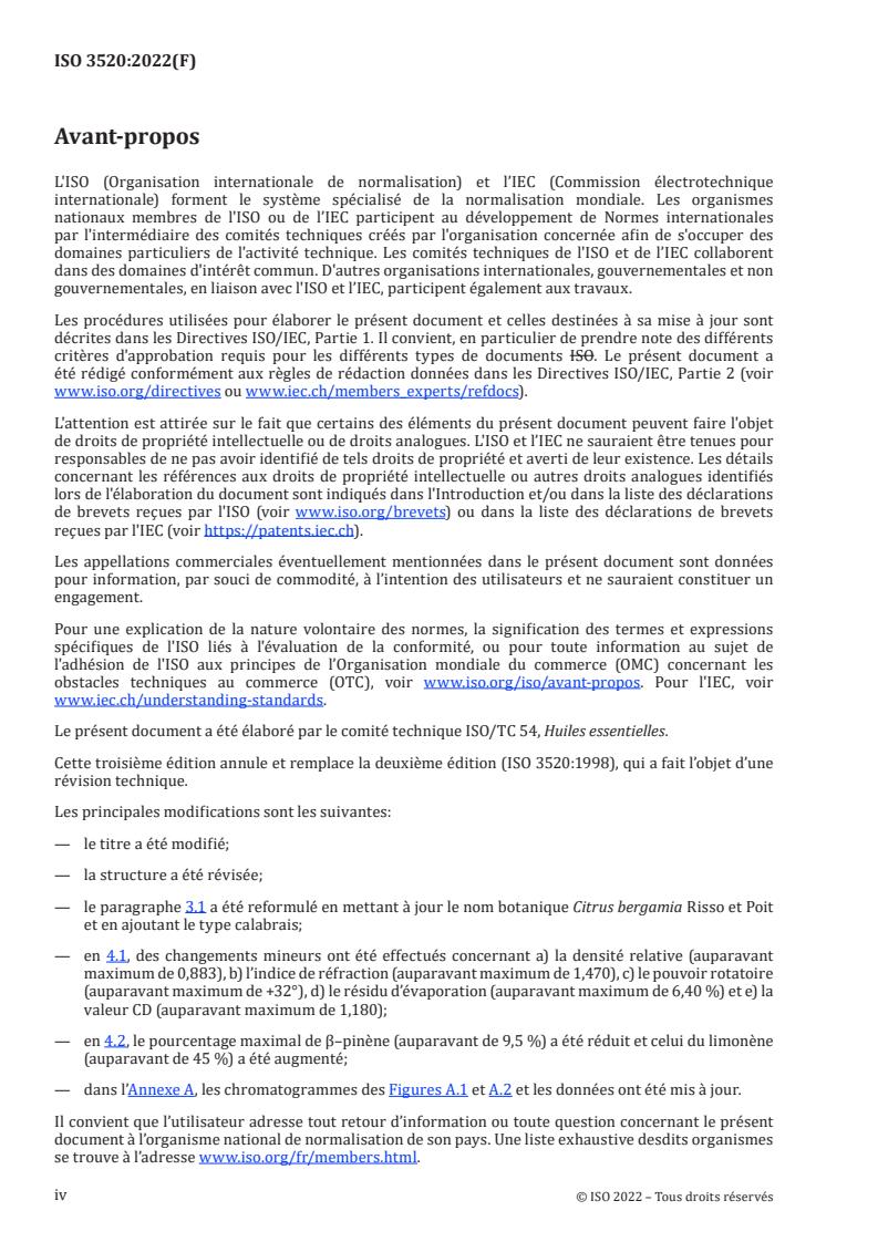 ISO 3520:2022 - Essential oil of bergamot [Citrus bergamia Risso et Poit], Calabrian type Released:3/18/2022