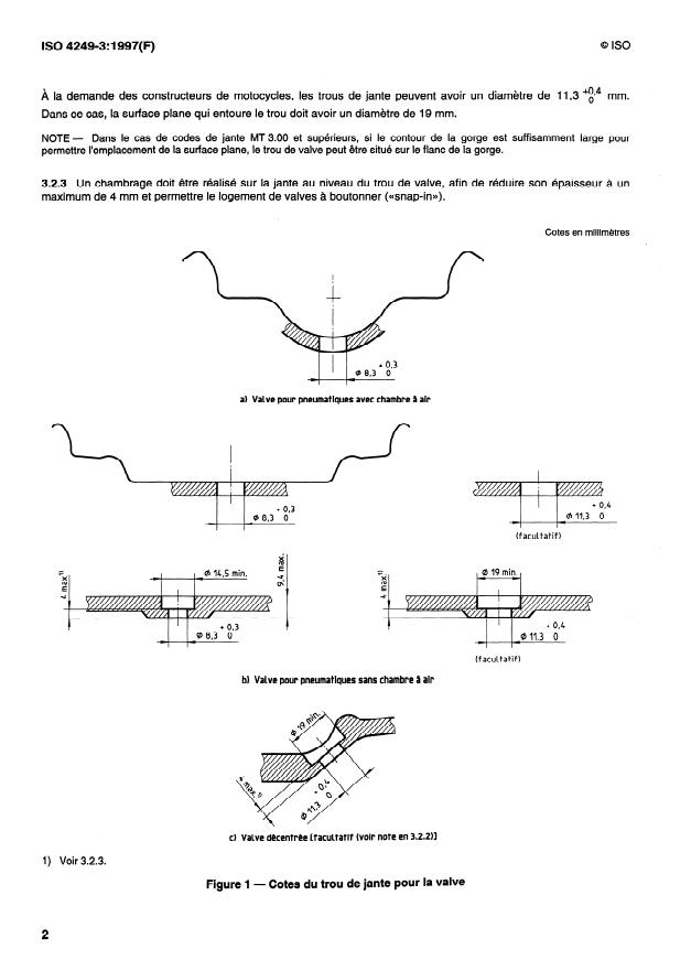 À la demande des constructeurs de motocycles, les trous de jante peuvent avoir un diamètre de 11,3 +zV4 mm.