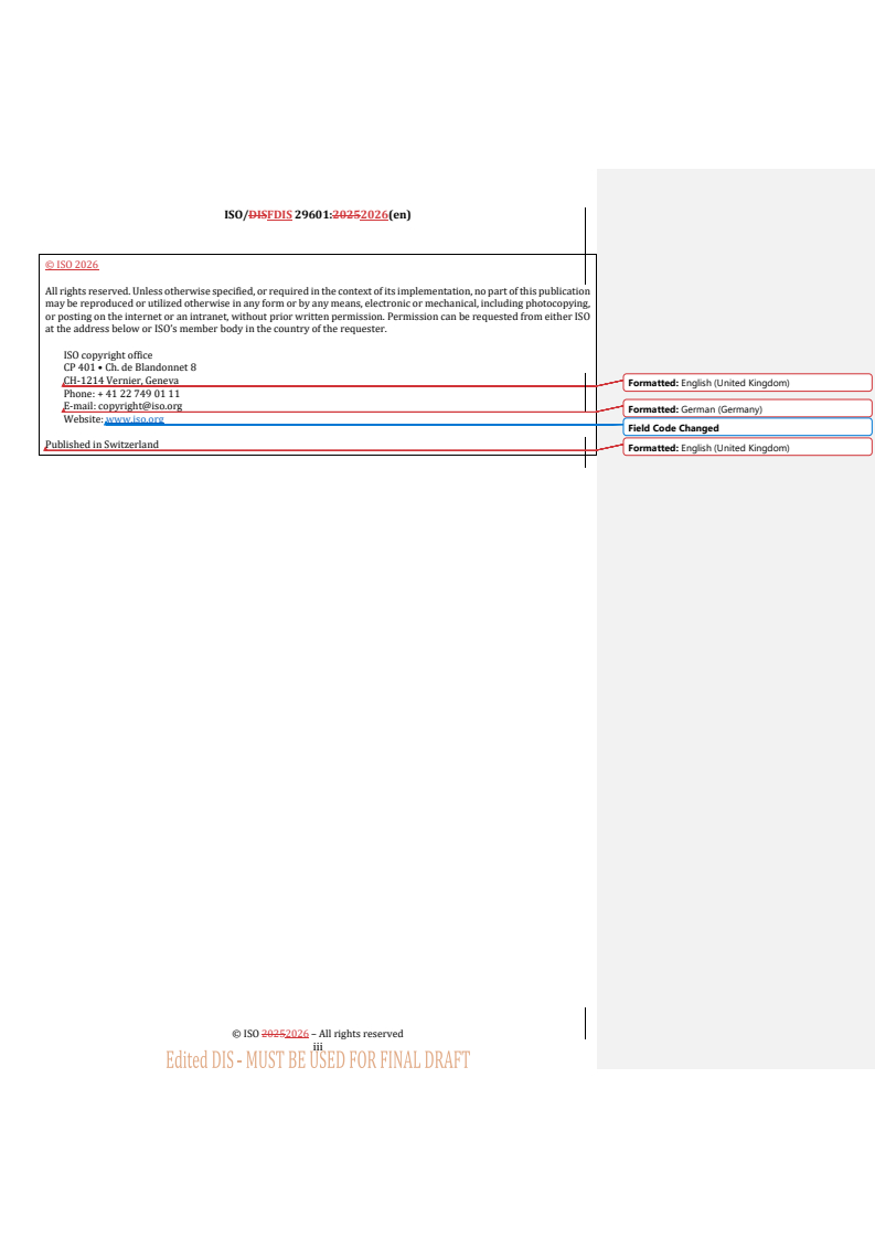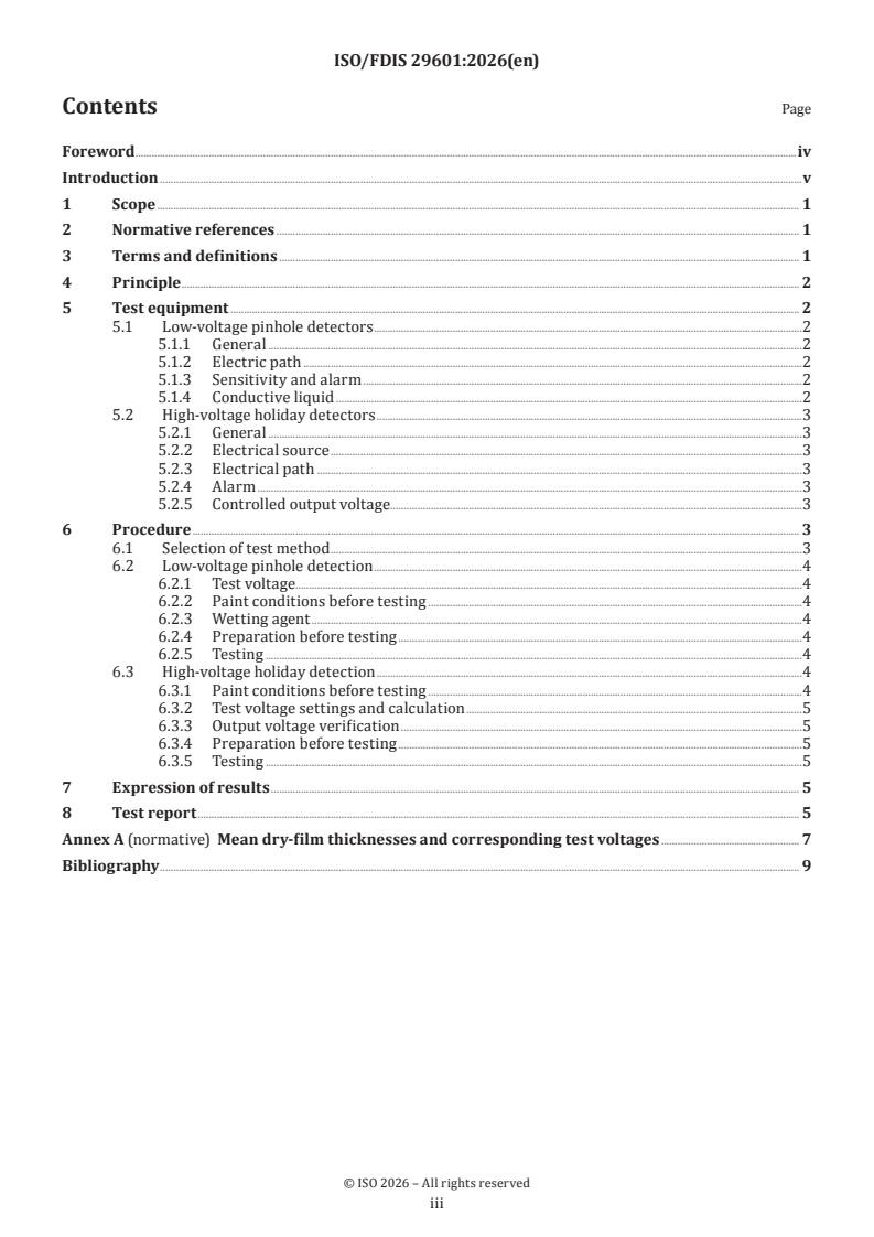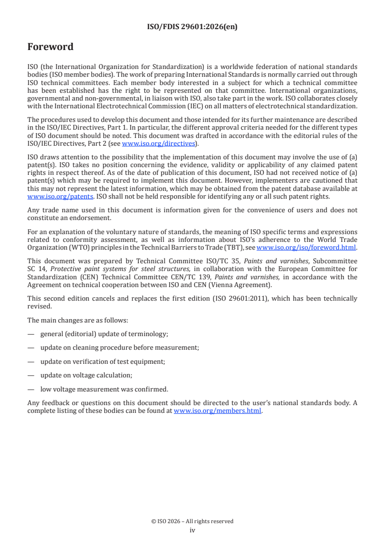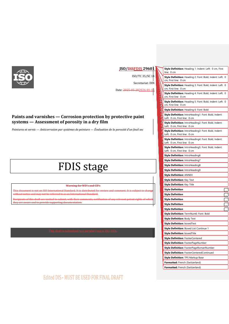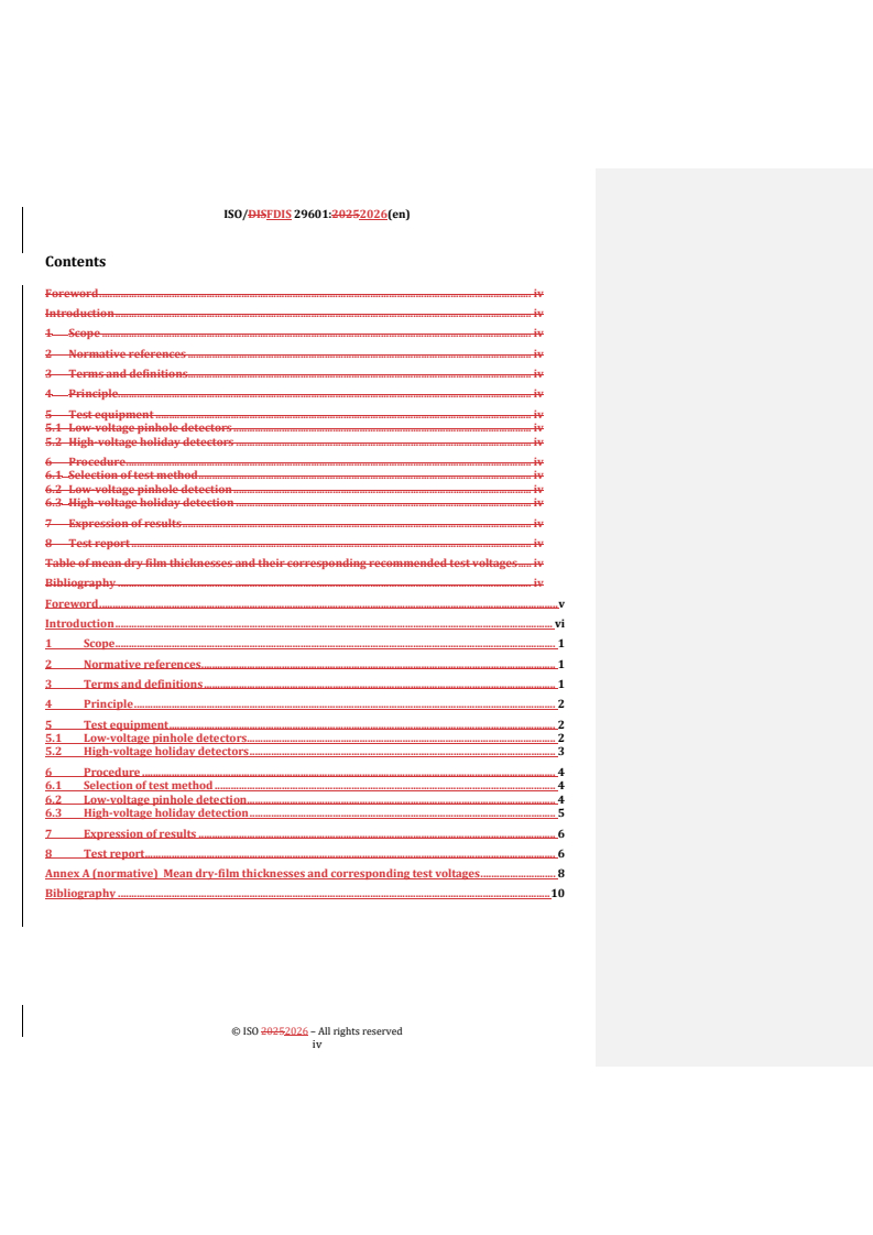 REDLINE ISO/FDIS 29601 - Paints and varnishes — Corrosion protection by protective paint systems — Assessment of porosity in a dry film Released:15. 01. 2026