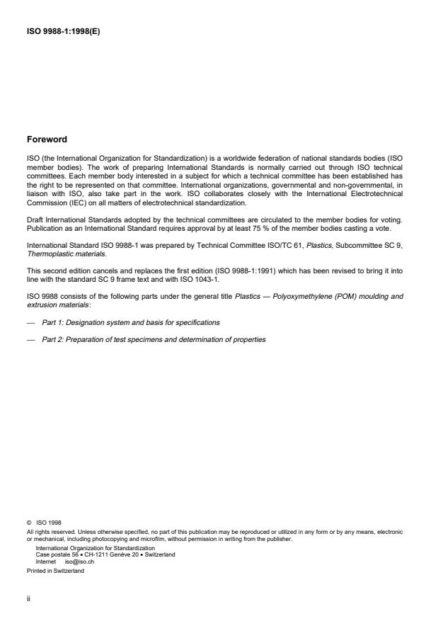 ISO 9988-1:1998 - Plastics -- Polyoxymethylene (POM) moulding and extrusion materials
