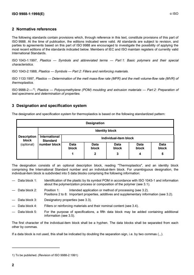1.1 This part of ISO 9988 establishes a system of designation for polyoxymethylene (POM) thermoplastic
