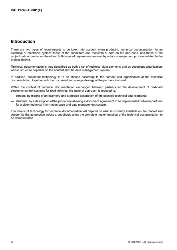 Keywords: ISO 11748-1, technical documentation, electrical and electronic systems, on-board electronic control systems, ECU, data dictionary, documentation agreement, road vehicles, calibration parameters, network communication.