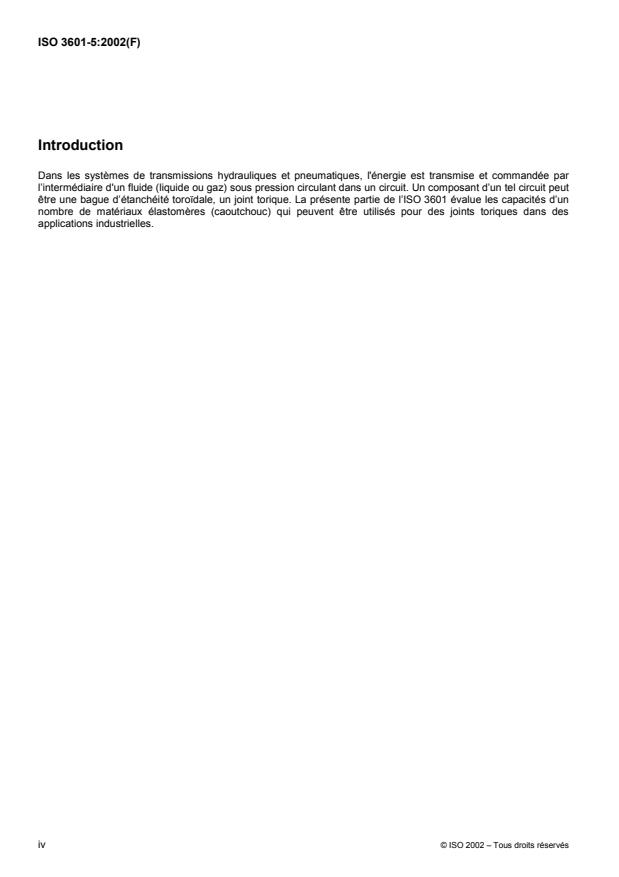 Introduction In fluid power systems, power is transmitted and controlled through a fluid (liquid or gas) under pressure within an enclosed circuit. One component of such a system can be a toroidal sealing ring, an O-ring. This part of ISO 3601 evaluates the suitability of a number of elastomeric materials (rubber) which may be used for O-rings in industrial applications. SIST ISO 3601-5:2003