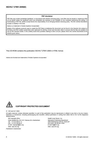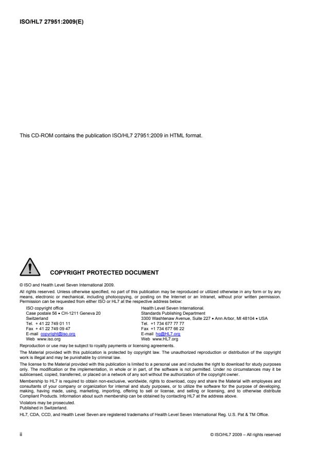 This CD-ROM contains the publication ISO/HL7 27951:2009 in HTML format.