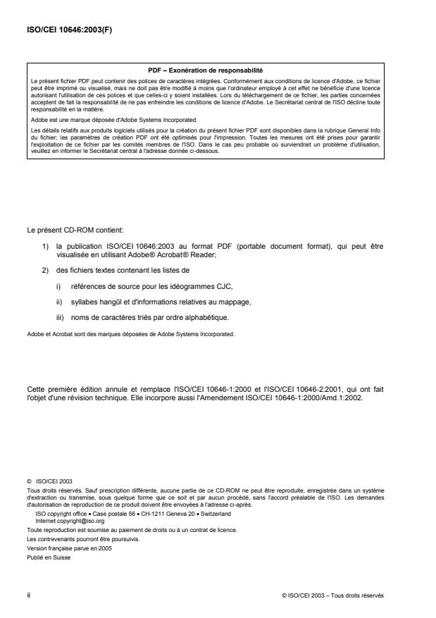 1) la publication ISO/CEI 10646:2003 au format PDF (portable document format), qui peut être