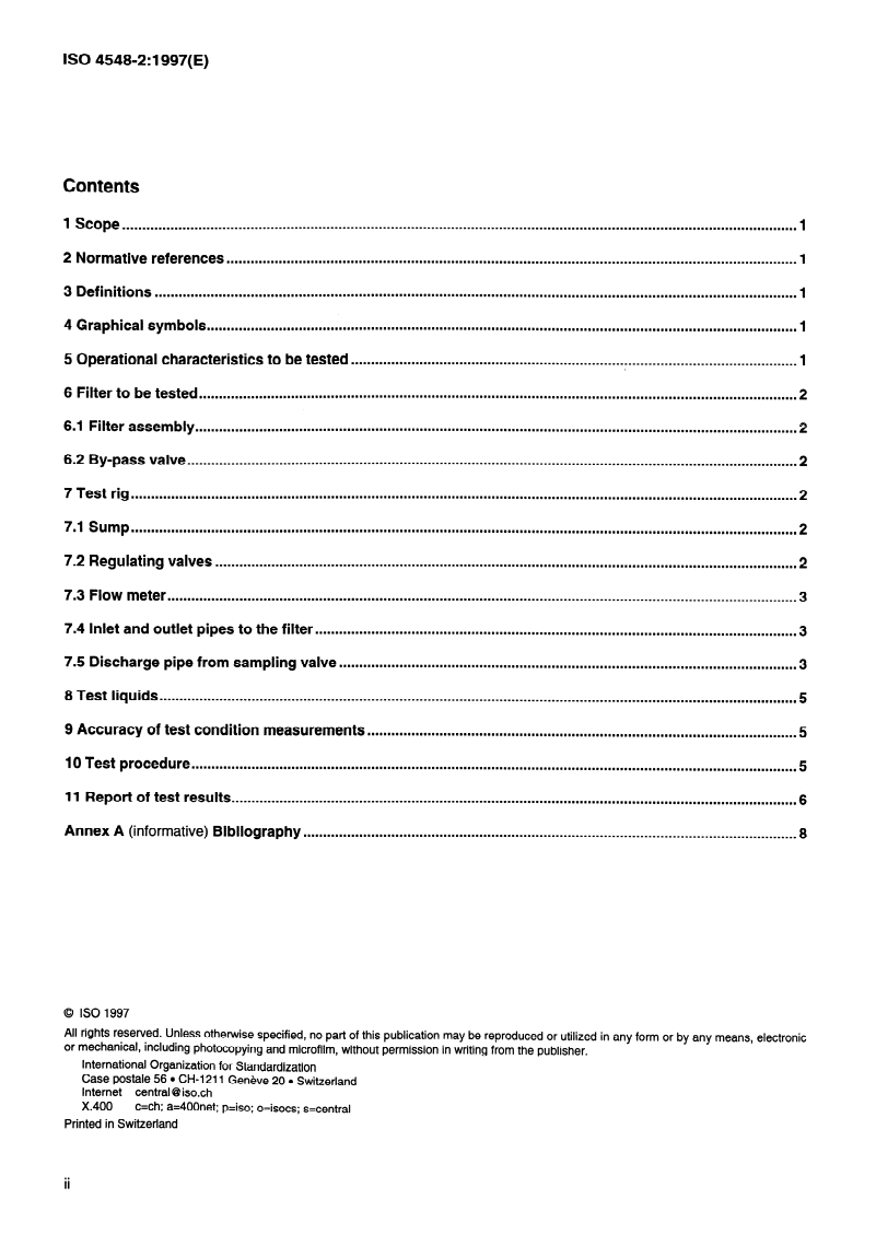 Keywords: ISO 4548-2:1997, by‑pass valve characteristics, lubricating oil filter test methods, full‑flow filters, kinematic viscosity, differential pressure, engine oil filter testing.