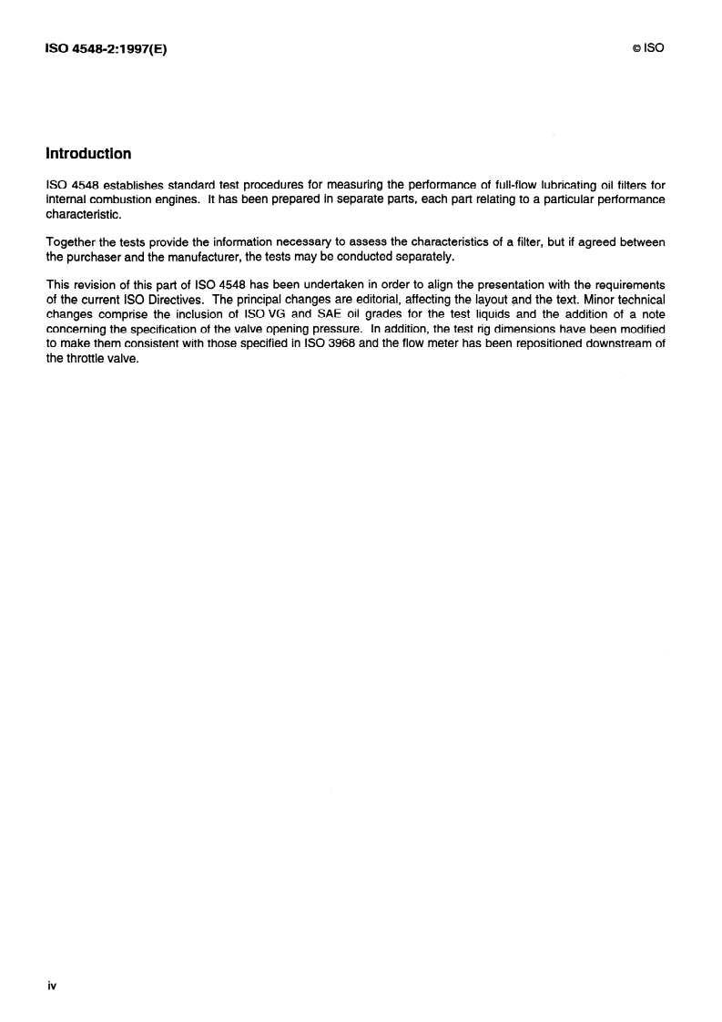 - Scope: Tests target the element by‑pass valve of full‑flow engine oil filters; complementary parts of ISO 4548 cover other filter characteristics.
