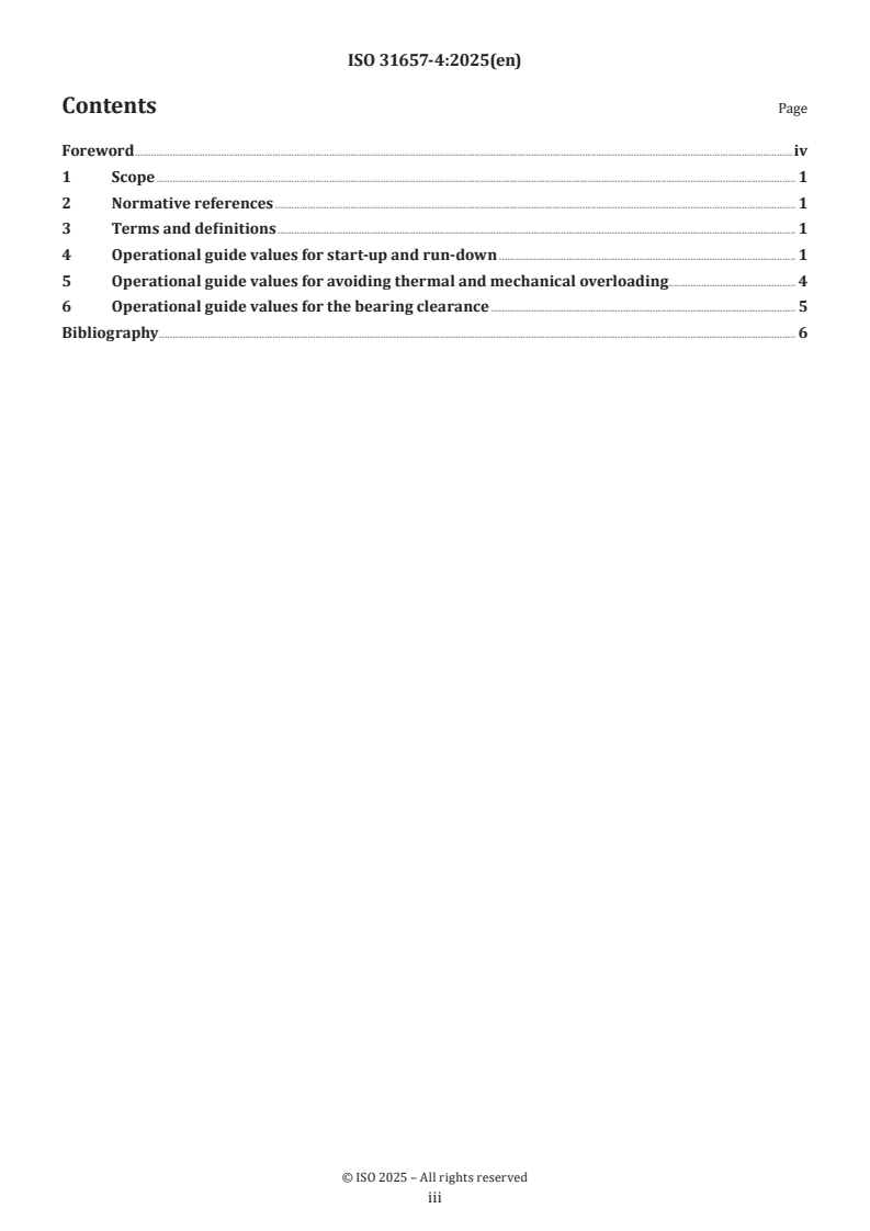 Keywords: ISO 31657-4, plain bearings, hydrodynamic plain journal bearings, multi-lobed bearings, tilting‑pad bearings, permissible operational parameters, lubricant film thickness, bearing clearance, start‑up run‑down, bearing load.