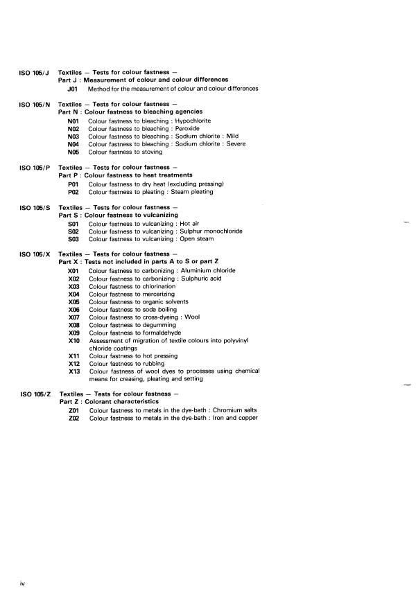 NOTE - International Standard IS0 105 is presented in the form of parts. Each of these parts