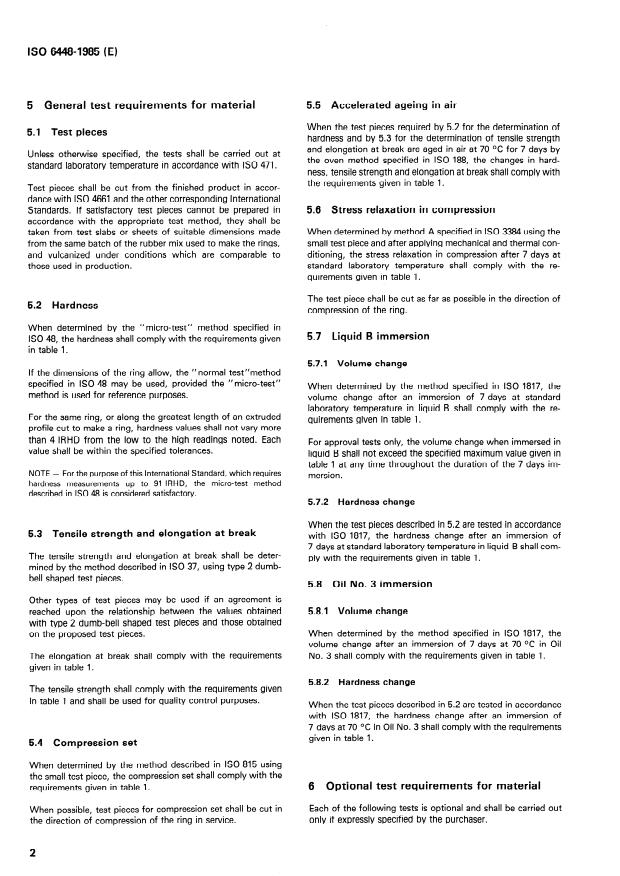 30 % (V/ v) nor to liquids polluted by traces of Petroleum ISO 815, Rubber, vulcanized - Determination of compression