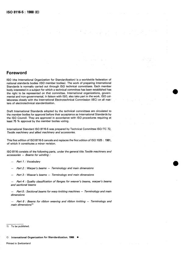 ISO 8116-5:1988 - Textile machinery and accessories -- Beams for winding
