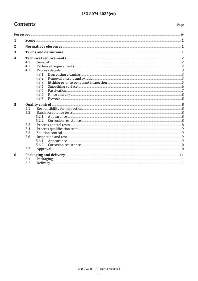 Keywords: ISO 8074:2025, aerospace surface treatment, austenitic stainless steel, passivation, pickling, degreasing, penetrant inspection, corrosion resistance.