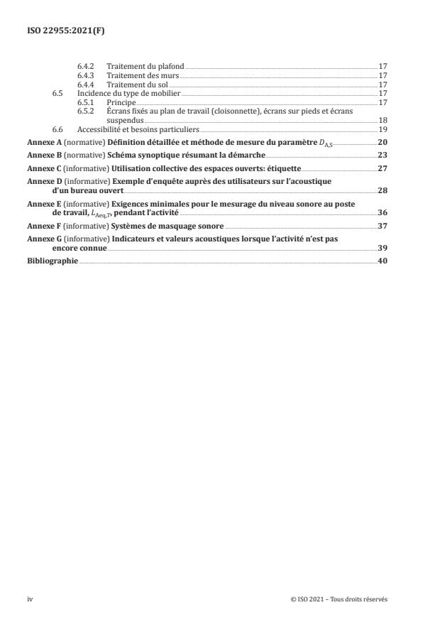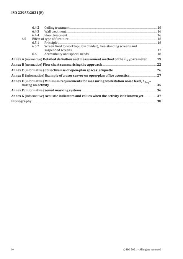 - Tools and annexes: Includes normative measurement definitions (Annex A), a flow chart of the approach (Annex B), user-survey examples, minimum measurement requirements (Annex E), and guidance on sound masking (Annex F).