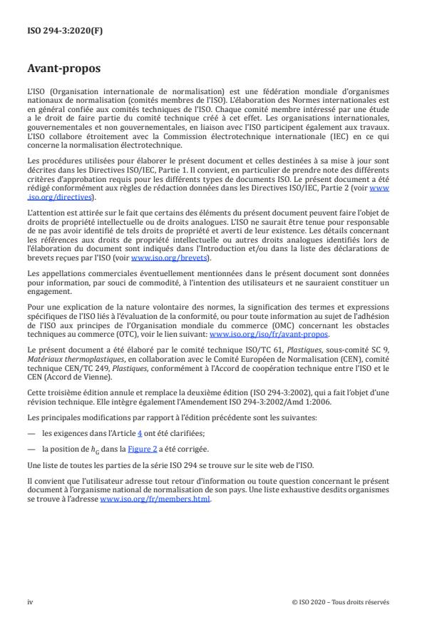 Cette troisième édition annule et remplace la deuxième édition (ISO 294-3:2002), qui a fait l’objet d’une