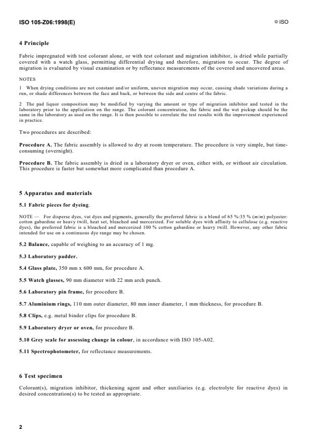 - Reporting: Test report must cite ISO 105‑Z06:1998, pad liquor composition (colorant, inhibitor, thickener, electrolyte), substrate and wet pickup, drying conditions, evaluation method and any deviations. Precision has not been established.