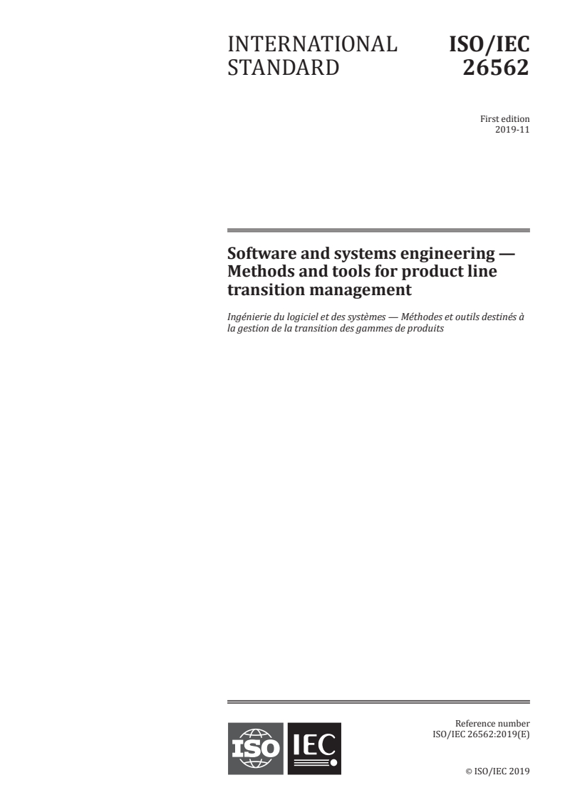 ISO/IEC 26562:2019 - Software and systems engineering — Methods and tools for product line transition management/28/2019