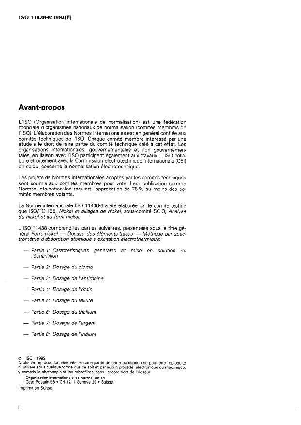 ISO 11438-8:1993 - Ferronickel -- Determination of trace-element content by electrothermal atomic absorption spectrometric method
