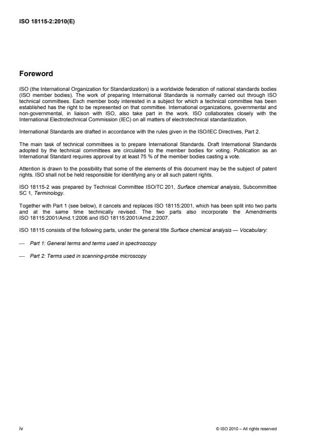 ISO 18115-2:2010 is a standard published by the International Organization for Standardization (ISO). Its full title is "Surface chemical analysis — Vocabulary — Part 2: Terms used in scanning-probe microscopy". This standard covers: ISO 18115 is a vocabulary, published in two parts, which defines terms for surface chemical analysis. ISO 18115-1:2010 covers general terms and those used in spectroscopy while ISO 18115-2:2010 covers terms used in scanning-probe microscopy.