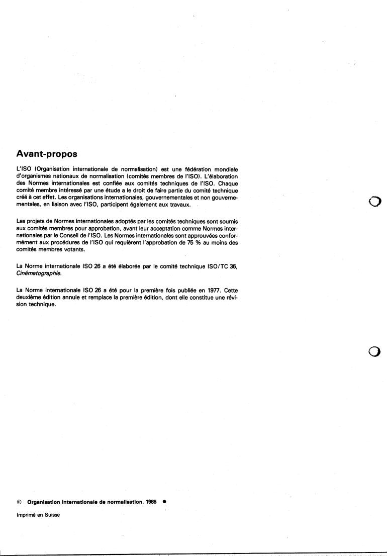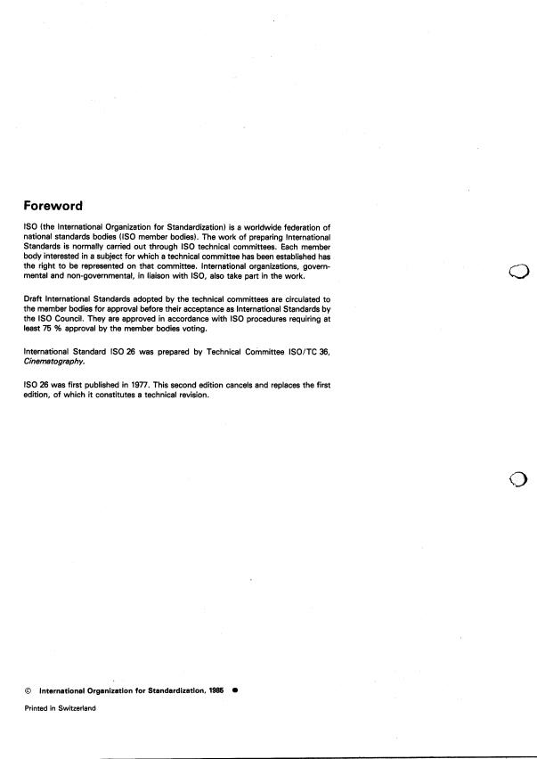 ISO 26:1985 - Cinematography — Projector usage of 16 mm motion-picture films for direct front projection — Specifications Released:6/6/1985