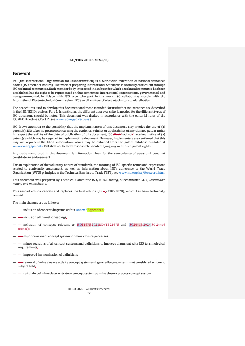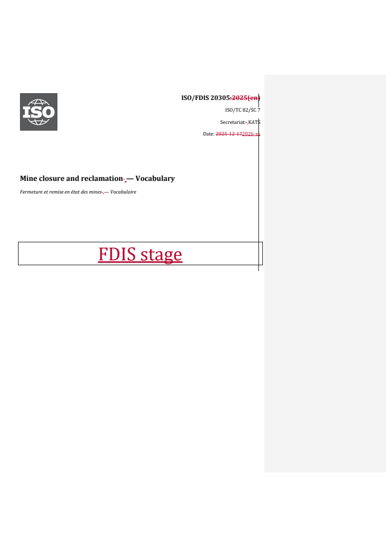 REDLINE ISO/FDIS 20305 - Mine closure and reclamation — Vocabulary Released:19. 01. 2026