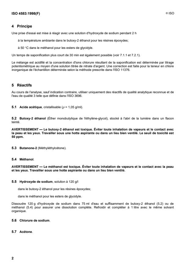 ISO 4583:1998 - Plastiques -- Résines époxydes et matieres apparentées -- Dosage du chlore facilement saponifiable