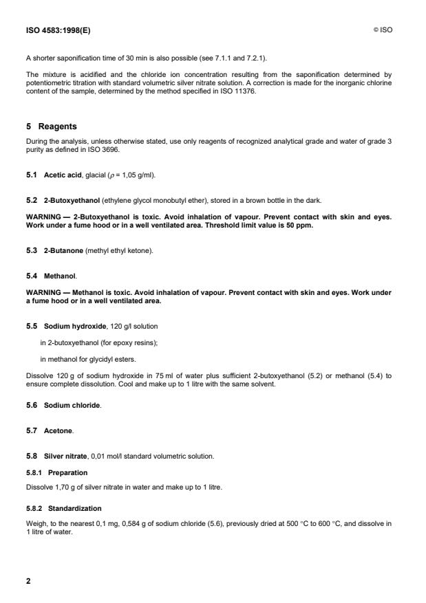 ISO 4583:1998 - Plastics -- Epoxy resins and related materials -- Determination of easily saponifiable chlorine