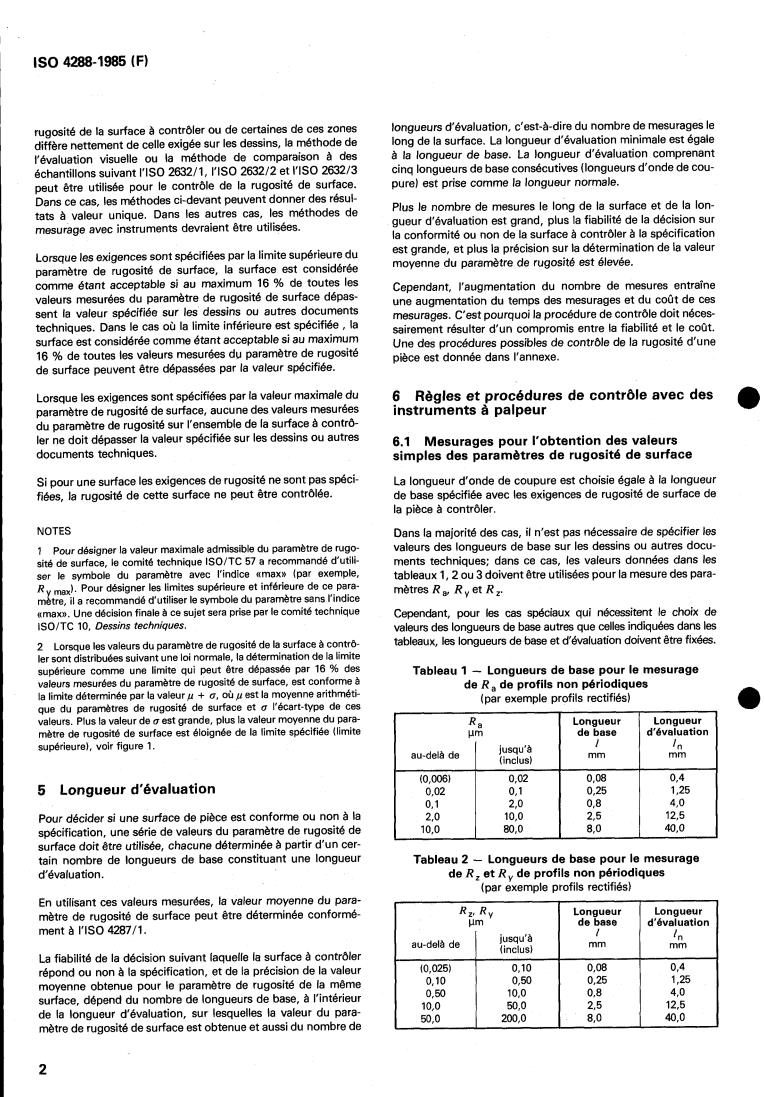 Si pour une surface les exigences de rugosité ne sont pas spéci- La longueur d'onde de coupure est choisie égale à la longueur