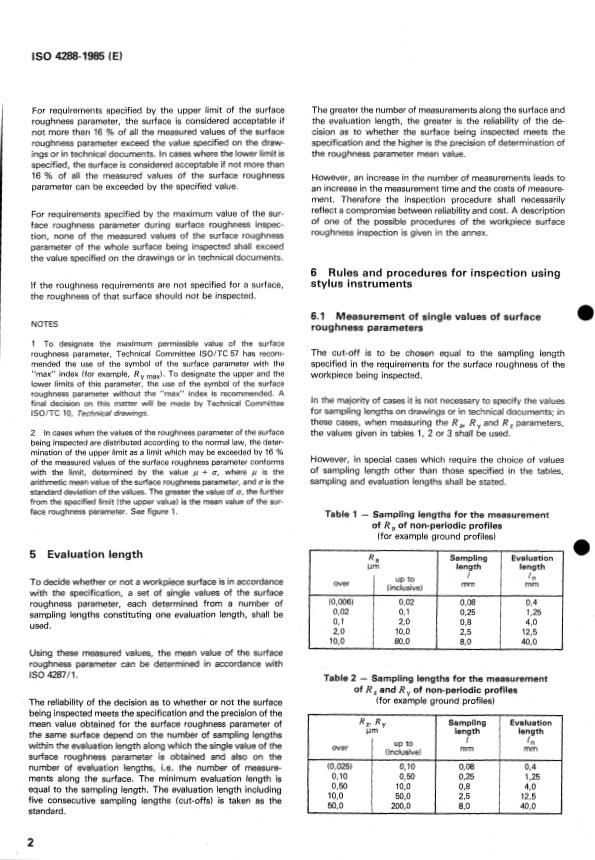 ISO 4288:1985 - Rules and procedures for the measurement of surface roughness using stylus instruments Released:5/2/1985