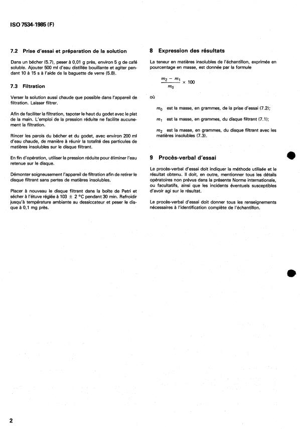 ISO 7534:1985 - Instant coffee -- Determination of insoluble matter content