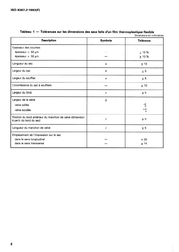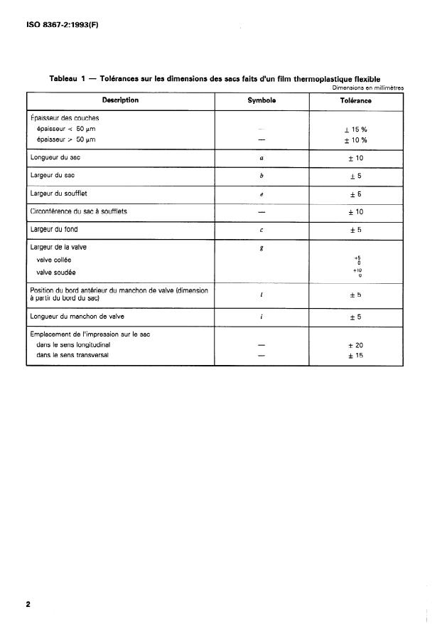 ISO 8367-2:1993 - Emballages -- Tolérances dimensionnelles des sacs d'usage général