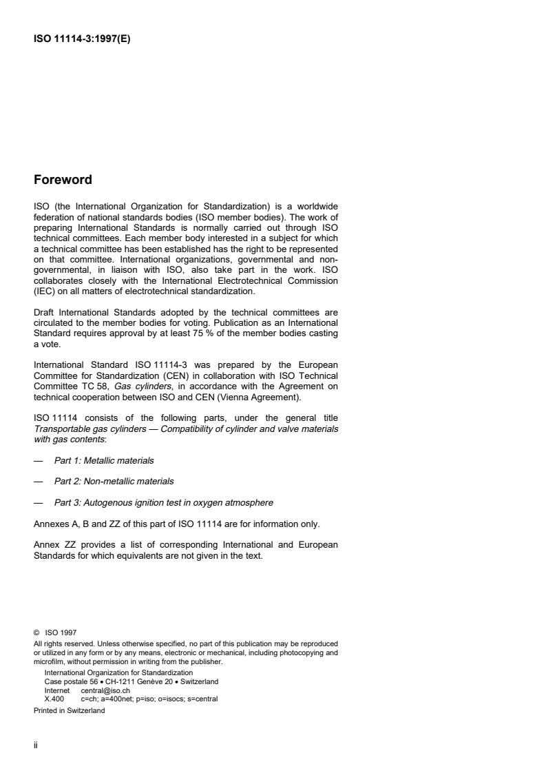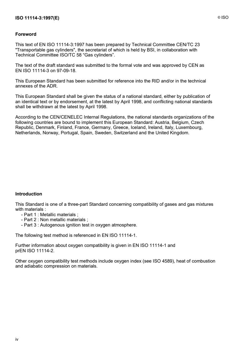 ISO 11114-3:1997 - Transportable gas cylinders — Compatibility of cylinder and valve materials with gas contents — Part 3: Autogenous ignition test in oxygen atmosphere Released:7/22/1999