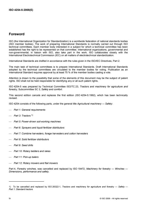ISO 4254-5:2008 is a standard published by the International Organization for Standardization (ISO). Its full title is "Agricultural machinery — Safety — Part 5: Power-driven soil-working machines". This standard covers: ISO 4254-5:2008, intended to be used together with ISO 4254-1, specifies the safety requirements and their verification for the design and construction of mounted, semi-mounted and trailed power-driven soil‑working machines used in agriculture. In addition, it specifies the type of information on safe working practices (including residual risks) to be provided by the manufacturer.