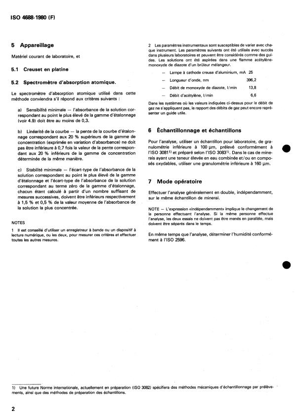 ISO 4688:1980 - Minerais de fer -- Dosage de l'aluminium -- Méthode par spectrométrie d'absorption atomique dans la flamme