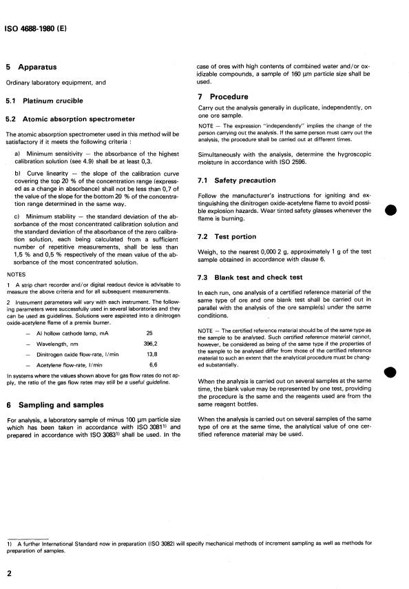 (Main)Iron ores — Determination of aluminium content — Flame atomic absorption spectrometric method