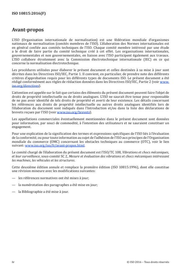 L'ISO 10815 :2016 établit les principes fondamentaux de mesurage, de traitement et d'évaluation des vibrations produites au niveau interne dans les tunnels ferroviaires par le passage des trains. L'établissement de modes opératoires normalisés peut permettre d'obtenir des données comparatives sur la réponse des différents éléments d'un tunnel, par intervalles, à condition que la source d'excitation soit la même. II est également possible de comparer les données obtenues dans différents tunnels. Les mesurages considérés dans le cadre de l'ISO 10815 :2016 concernent la réponse des éléments de structures et des éléments secondaires fixés dans le tunnel. Ils ne concernent pas la réponse des personnes se trouvant dans le tunnel ou à proximité, ni celle des passagers de trains circulant sous le tunnel.