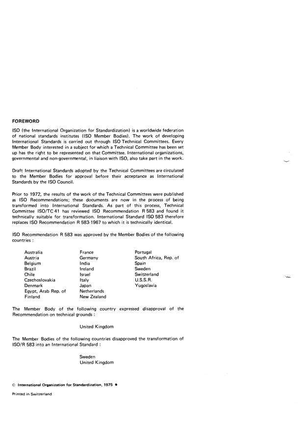 Committee lSO/TC 41 has reviewed IS0 Recommendation R 583 and found it
