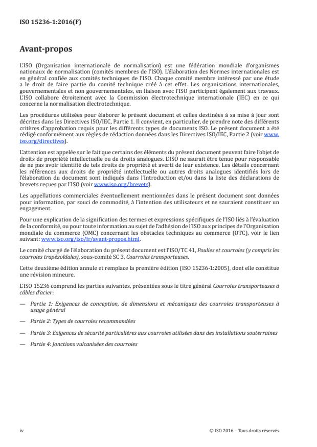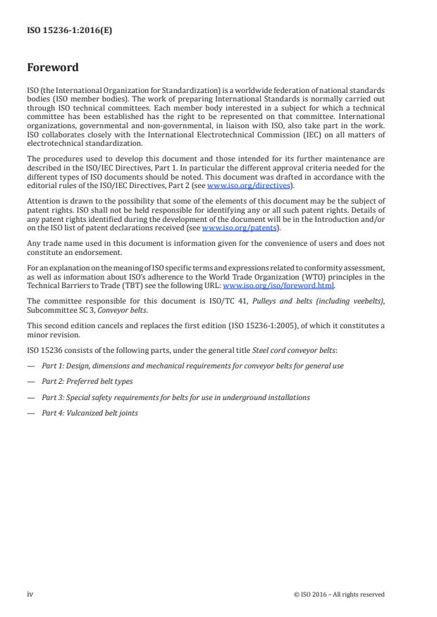 ISO 15236-1:2016 is a standard published by the International Organization for Standardization (ISO). Its full title is "Steel cord conveyor belts — Part 1: Design, dimensions and mechanical requirements for conveyor belts for general use". This standard covers: ISO 15236-1:2016 specifies the performance and constructional requirements applicable to conveyor belts having steel cords in the longitudinal direction as reinforcement. The requirements for construction given in Clause 6 apply to the design of single belts, as well as the design of complete type series such as those covered in ISO 15236‑2.