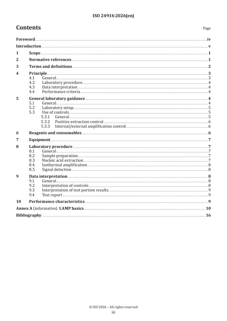 Keywords: ISO 24914, LAMP, loop-mediated isothermal amplification, food chain microbiology, detection of microorganisms, genetic markers, RT‑LAMP, sample preparation, isothermal amplification, performance criteria.