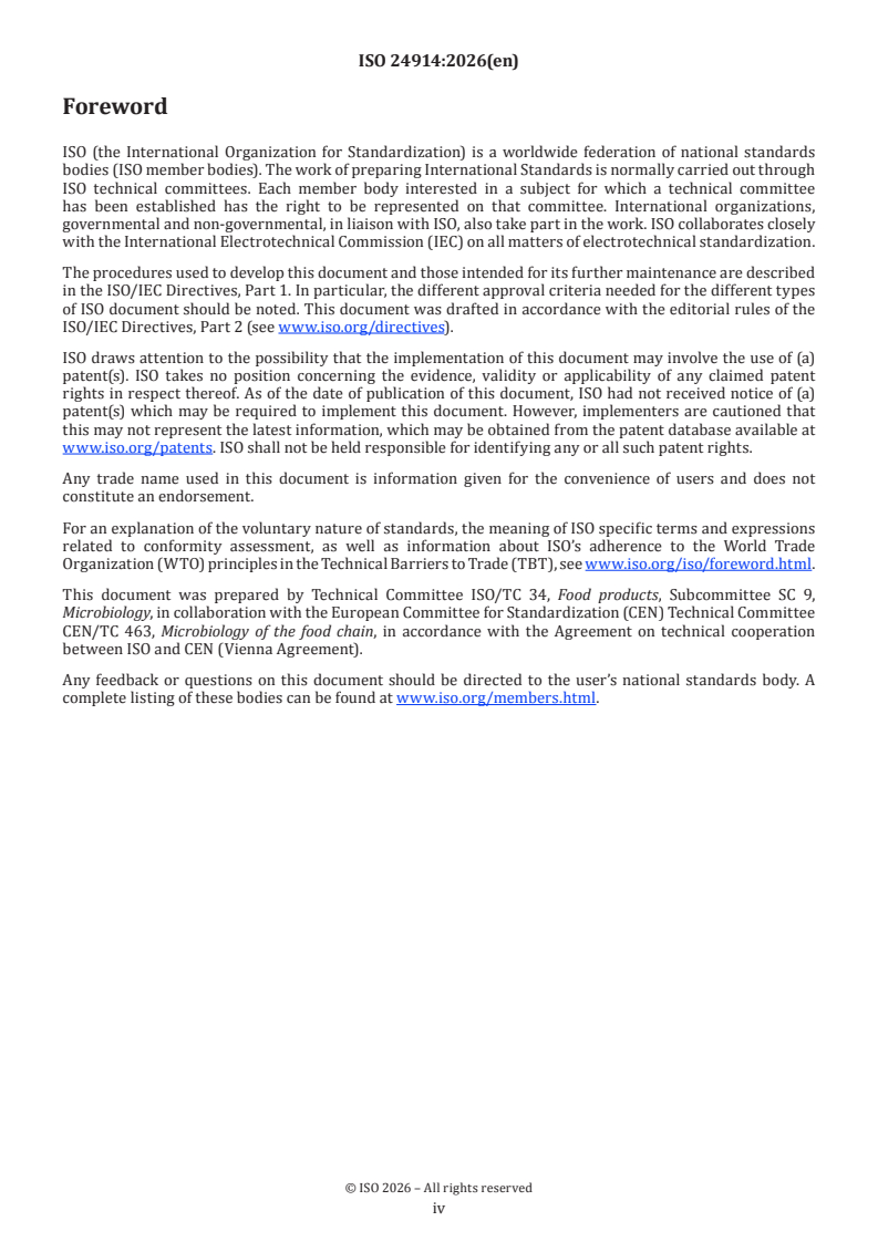 ISO 24914:2026 is classified under the following ICS (International Classification for Standards) categories: 07.100.30 - Food microbiology. The ICS classification helps identify the subject area and facilitates finding related standards.