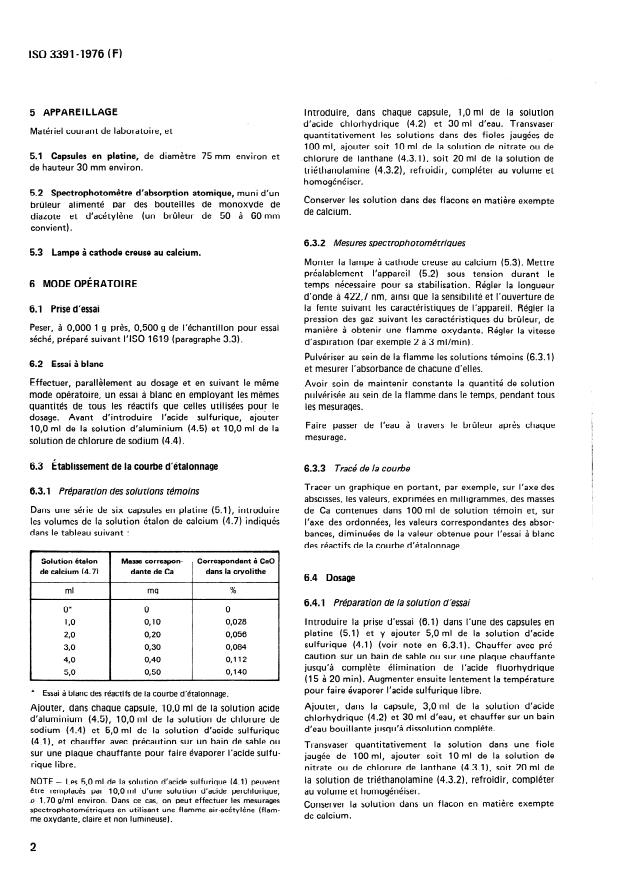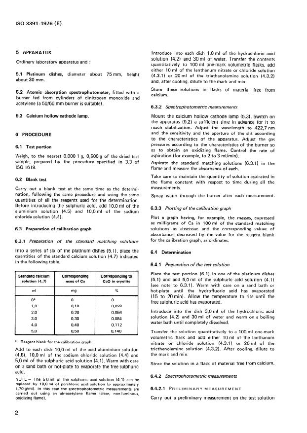 ISO 3391:1976 - Cryolite, natural and artificial -- Determination of calcium content -- Flame atomic absorption method