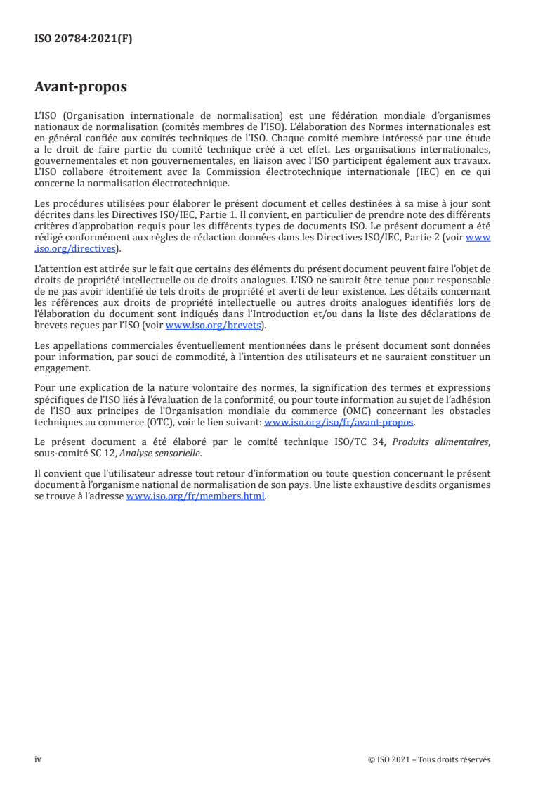 ISO 20784:2021 - Analyse sensorielle — Recommandations pour la justification d’allégations relatives à des produits par des études sensorielles et/ou des études consommateurs Released:3/23/2021
